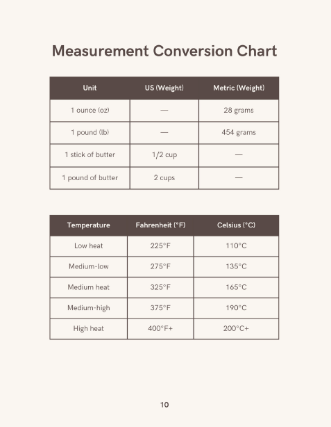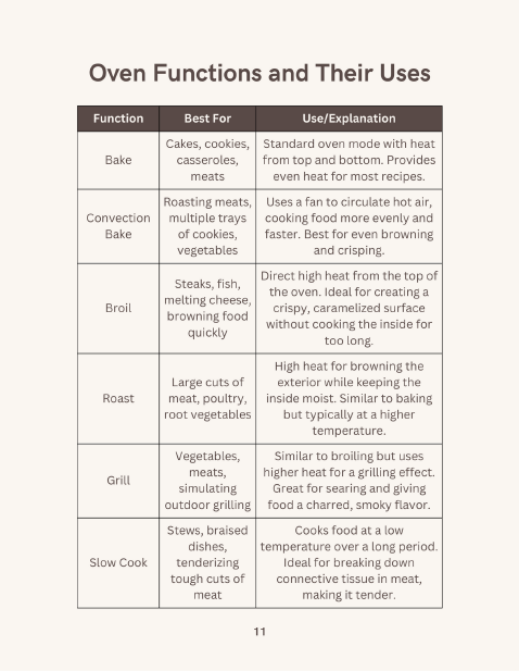 Recursos extras: inclui tabela de conversão de medidas, guia de funções do forno e muito mais.