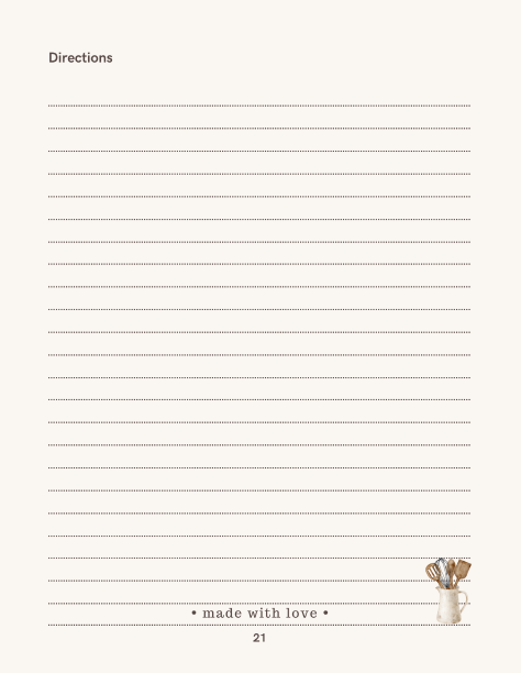 Com 220 páginas e espaço para 100 receitas Recipes está disponível em dois formatos: brochura (21,6 x 27,9 cm) para uso diário e capa dura (21 x 28 cm) para maior durabilidade.